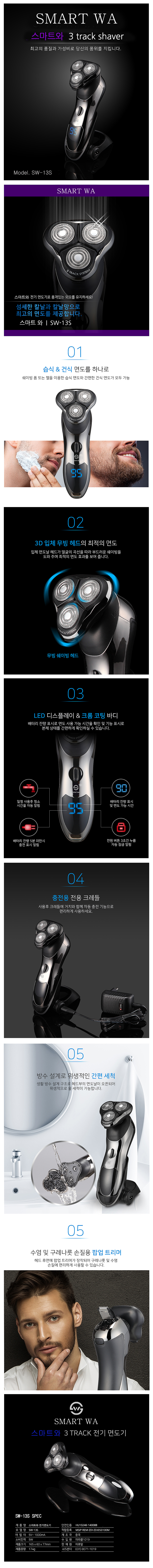 [SMART WA] 스마트와 방수형 3D 충전식 전기면도기 SW-13S
