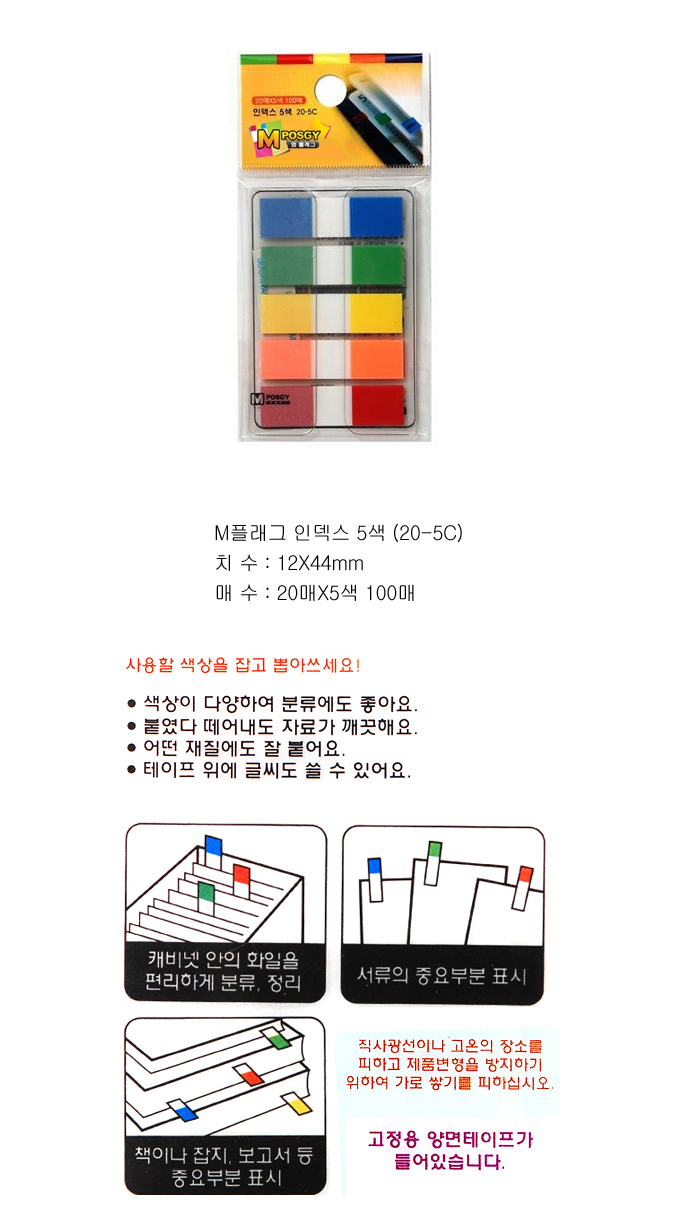 M플래그/인덱스/지그재그/MP4412-5C 44*12mm/20매*5색