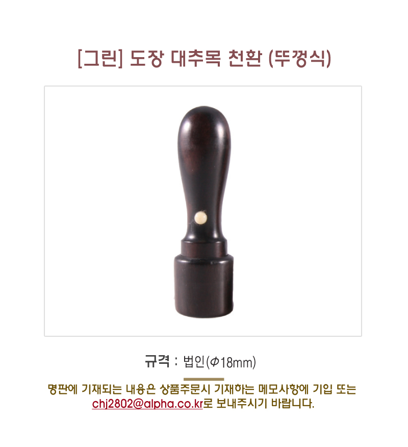 도장/대추목/천환/주문제작 18mm/법인인감/뚜껑식