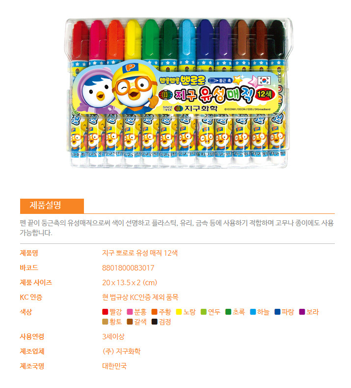 유성매직/뽀로로 12색