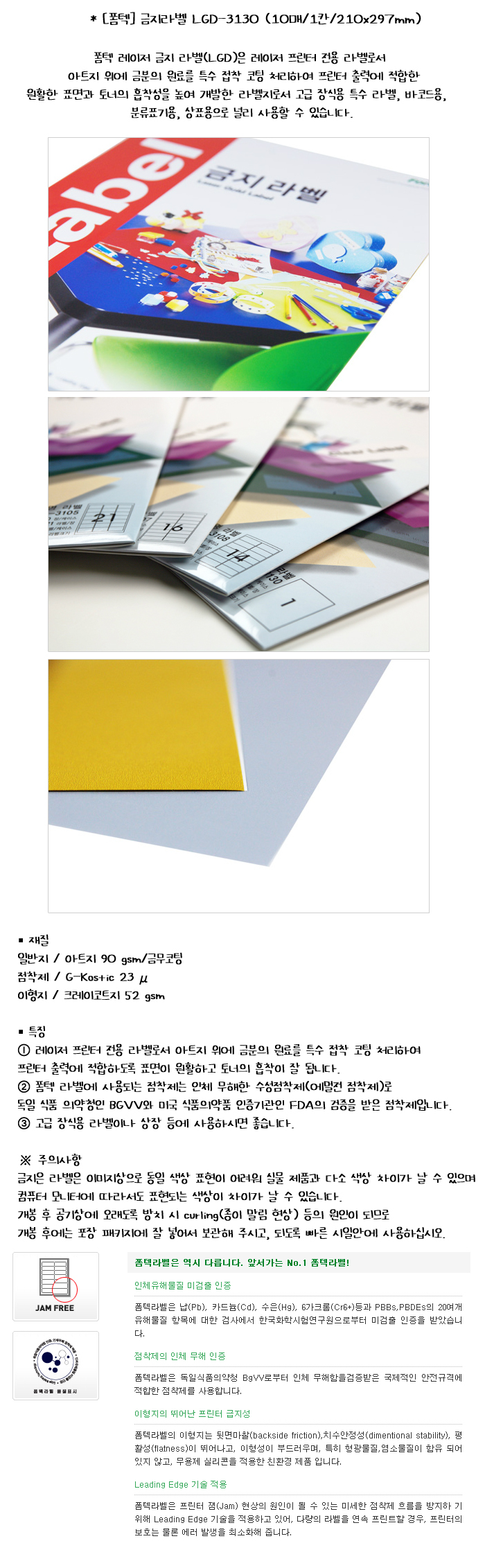 전산라벨/LGD-3130 10매/1칸/210*297mm/금지라벨