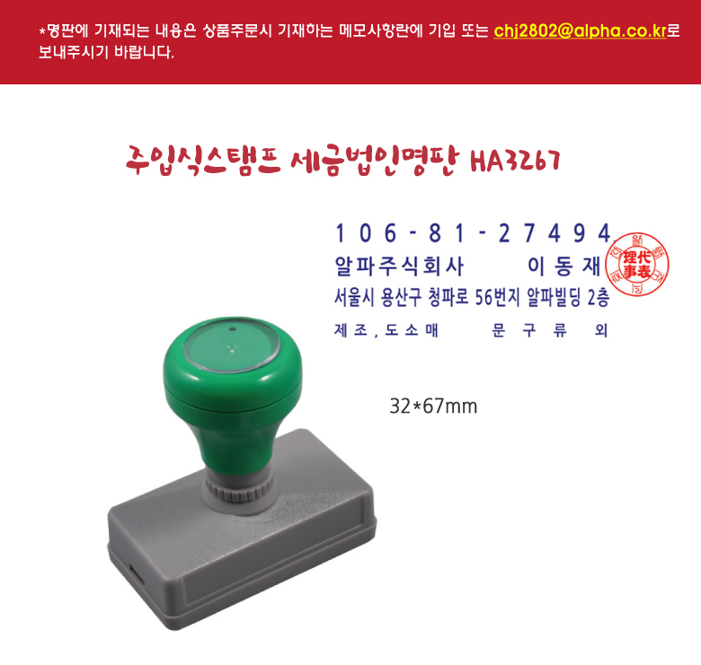 주입식스탬프/세금법인명판/HA3267 32*67mm
