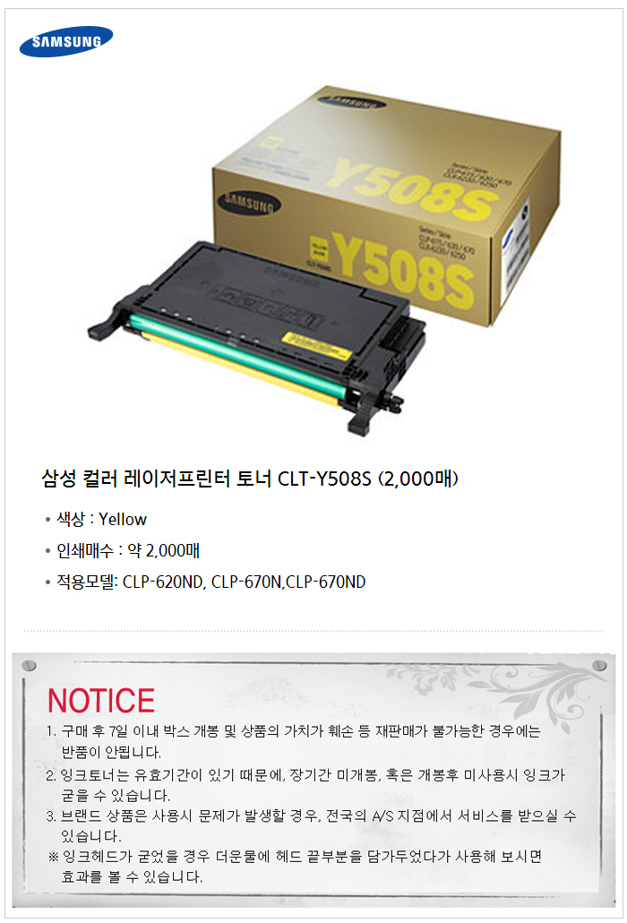 토너/CLT-Y508S 옐로우/2000매