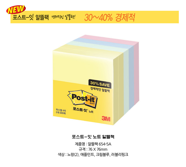 포스트잇/654-5A/알뜰팩 76*76mm/500매