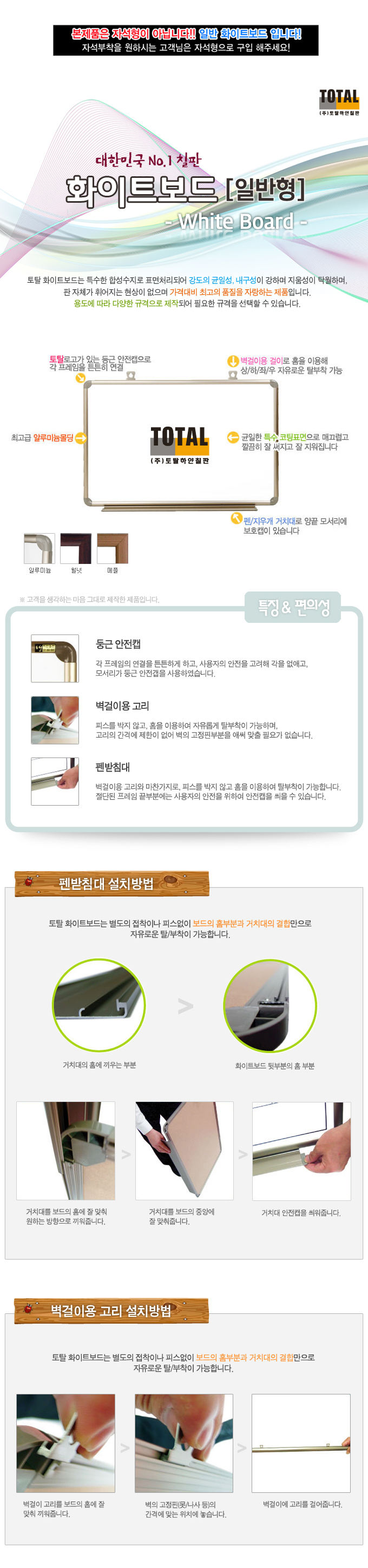 * 토탈하얀칠판에서 생산되는 게시판과 컬러보드류,큰사이즈의 화이트보드는 상품 주문시 제작되는 상품이라 변심교환 및 반품이 불가합니다.