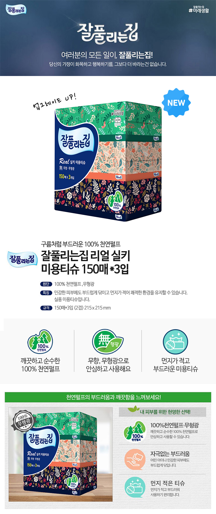 잘풀리는집 리얼실키 미용티슈 150매 3입