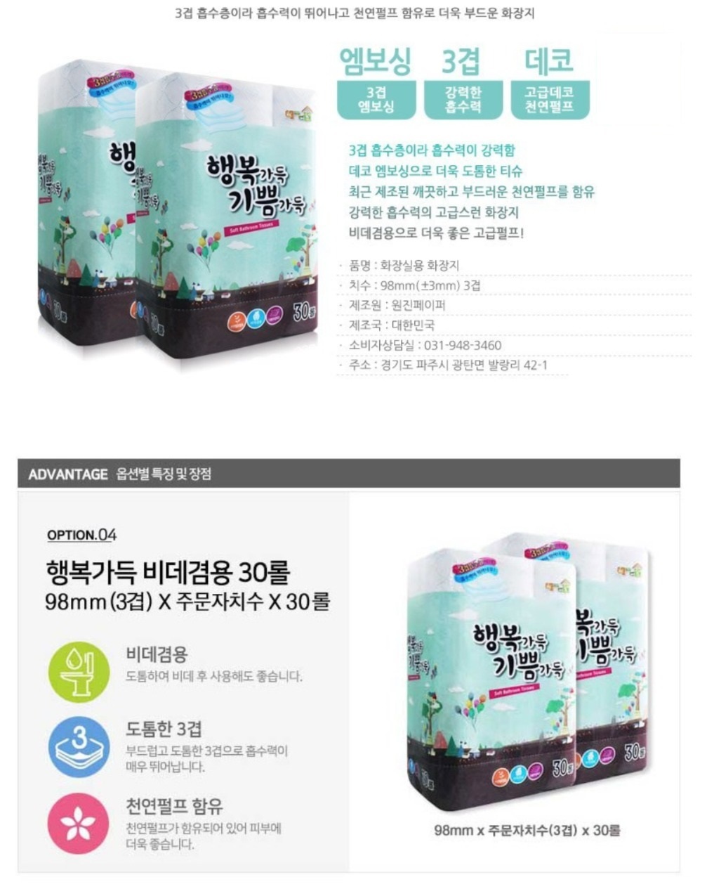 행복가득 기쁨가득 비데겸용 3겹 30롤 17m