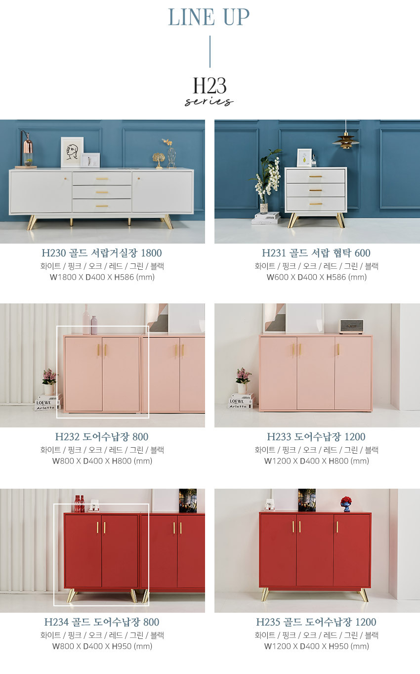 [착불배송 상세확인]H235 골드 도어수납장 1200 6colors
