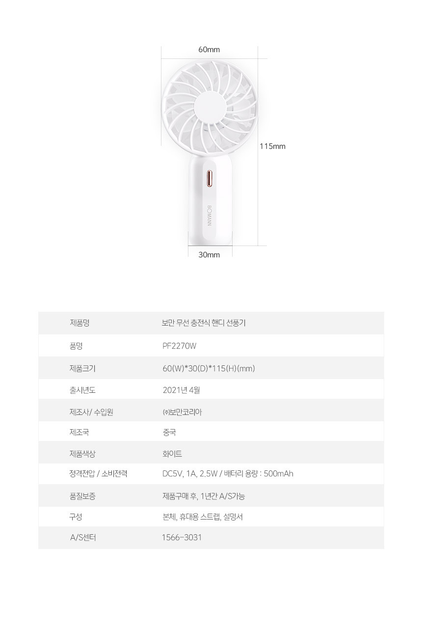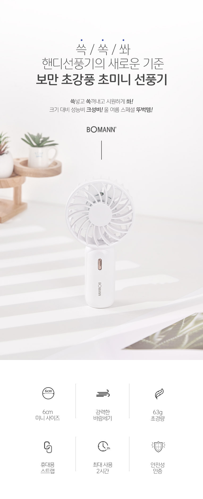 보만[BOMANN] 충전식 휴대용 미니선풍기 PF2270W